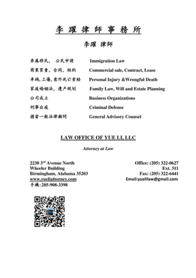 移民、商业合同、死亡索赔、婚姻法、遗产规划、公司成立、刑事出庭等